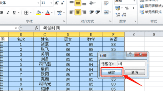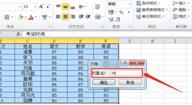 19:在弹出的系统对话窗口输入想要设置的行高数值,输入后点击【确定】。