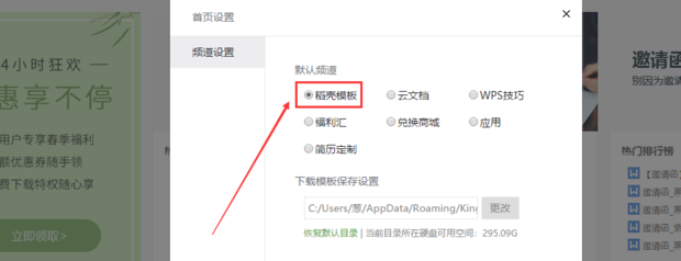 5:在弹出的页面中,勾选稻壳模板,以后打开WPS就不会显示登录页面了。