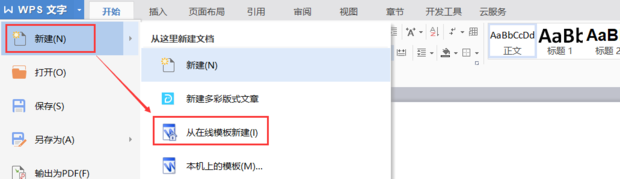 3:点击新建,在后续菜单中点击从在线模板新建。