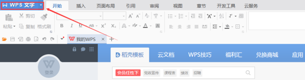 2:点击左上角的WPS选项卡。