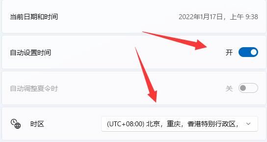 3:开启“自动设置时间”并设置你所在的“时区”。