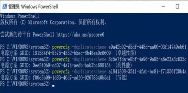 3:在打开的窗口界面内输入以下命令“powercfg -duplicatescheme e9a42b02-d5df-448d-aa00-03f14749eb61”并回车。