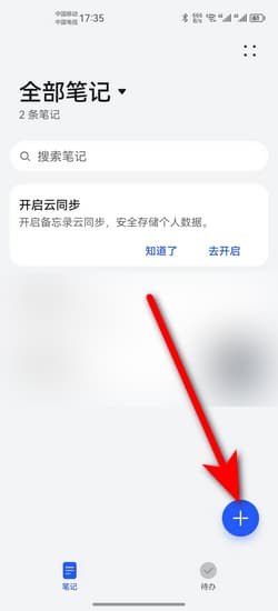 1:首先打开手机备忘录,然后点击右下方的+号。